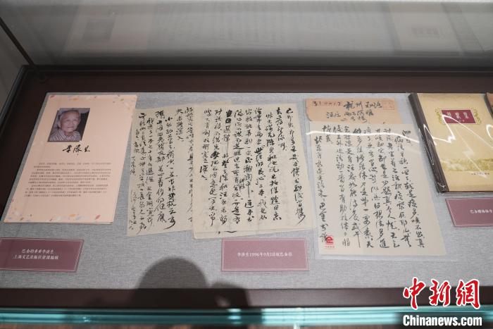圖為巴金(原名:李堯棠)與弟弟李濟生的書信展示。中新社記者 張亨偉 攝