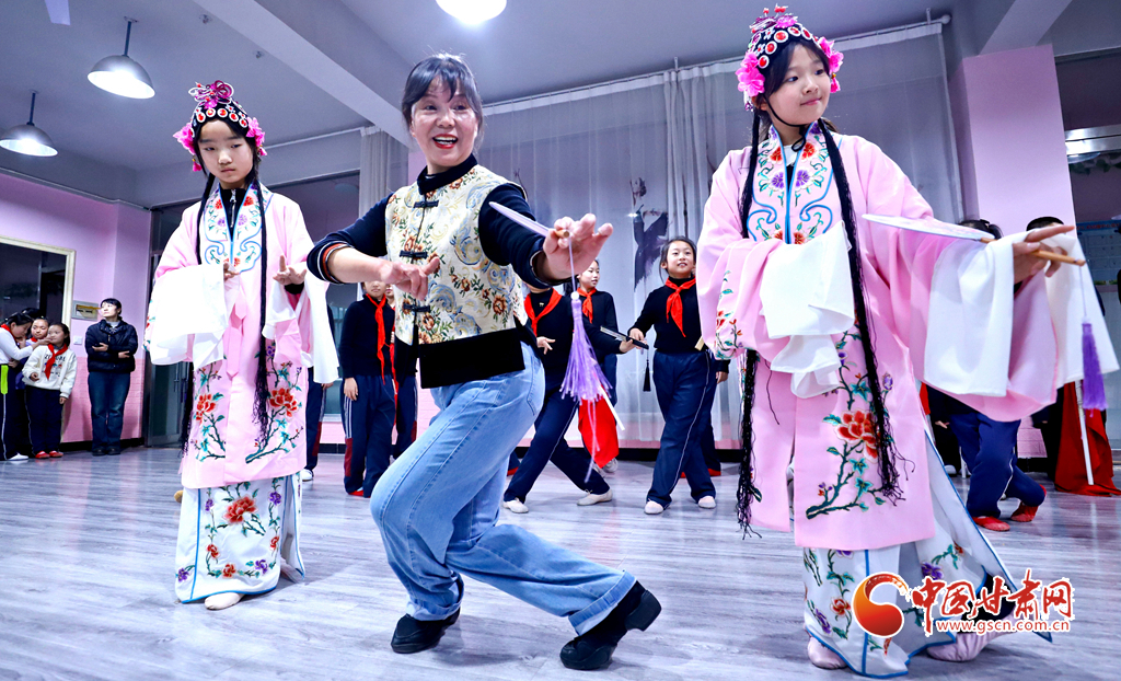 12月4日,張掖市高臺(tái)縣非遺保護(hù)中心的老師們來到解放街小學(xué),向1800多名孩子們傳授戲曲表演、剪紙、古箏演奏等“非遺”技藝,讓更多師生了解、學(xué)習(xí)非遺。