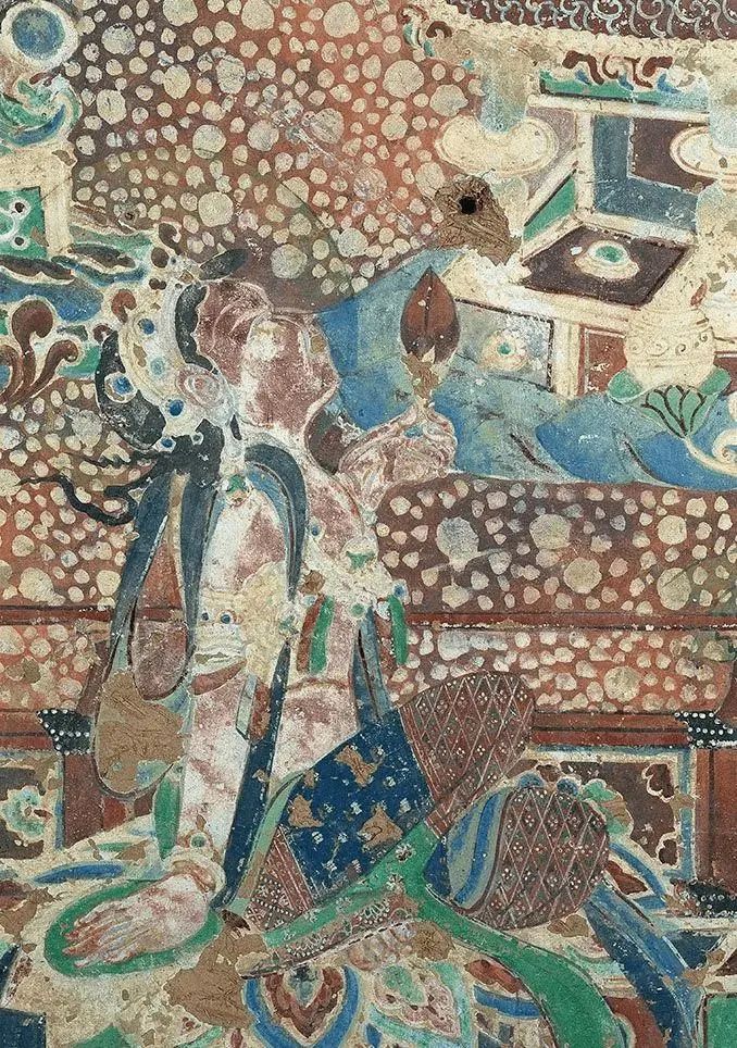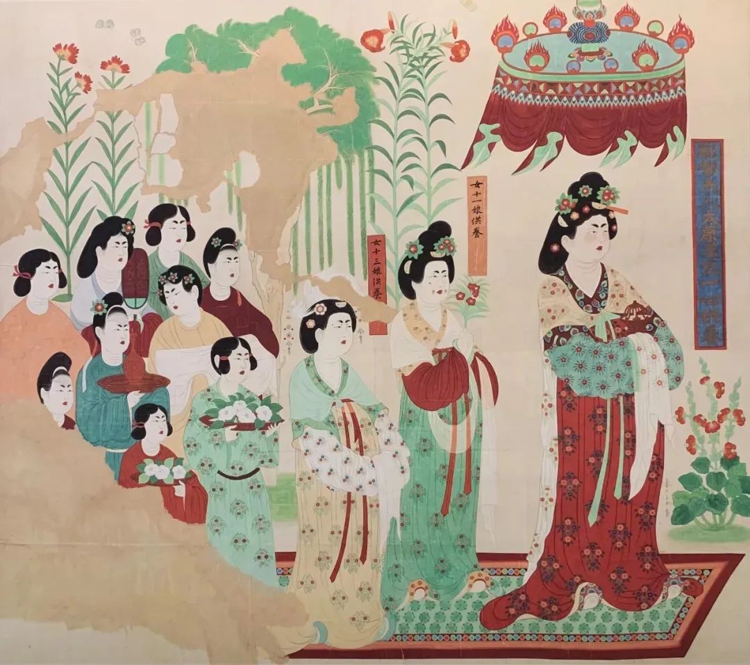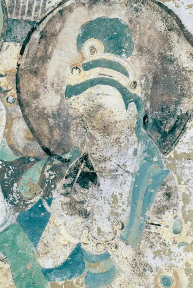 ?。?)莫高窟第130窟飛天壁畫修復(fù)當(dāng)我在第161窟修復(fù)壁畫時(shí),突然聽到洞窟外一聲巨響,我猜想,應(yīng)該是洞窟發(fā)生了坍塌。于是我趕緊循聲而去,發(fā)現(xiàn)發(fā)出巨大聲響的是第130窟,第130窟北壁上部壁畫為飛天,其中空鼓壁畫大面積脫落,有2平方米多。脫落的壁畫掉在了佛腳上,碎成了一地。未脫落壁畫的邊緣十幾厘米都已脫離墻壁,隨時(shí)有脫落的風(fēng)險(xiǎn)。我于是向常書鴻先生匯報(bào),然后我們上報(bào)國家文化部。國家文化部批示,對(duì)第130窟進(jìn)行加固維修。