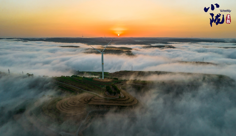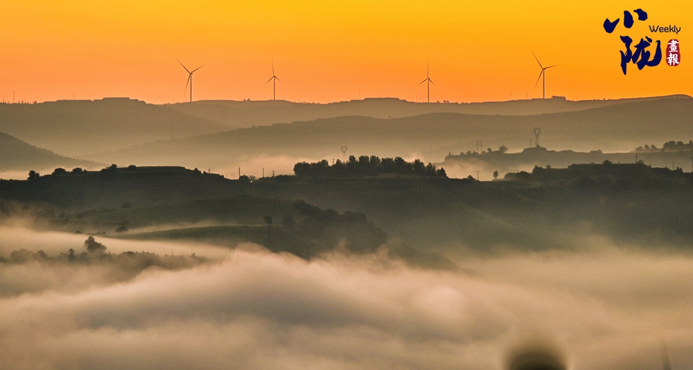 云霧如海浪般向四周漫延,呈現(xiàn)出別樣的霧海景觀,聳立在山川梁峁間的風(fēng)力發(fā)電機(jī)隨風(fēng)律動,成為當(dāng)?shù)匾坏廓毺氐娘L(fēng)景。