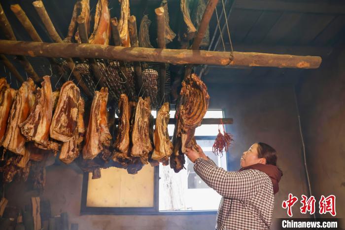圖為貴州施秉云臺(tái)村一村民在查看臘肉熏制情況。磨桂賓 攝