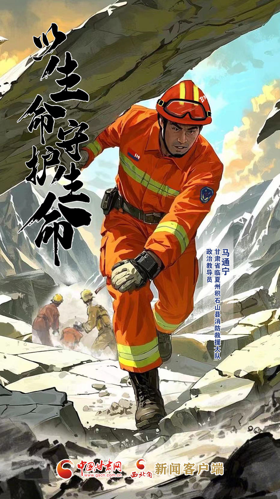 手繪海報|甘肅省臨夏州積石山縣消防救援大隊政治教導(dǎo)員馬通寧:以生命守護生命