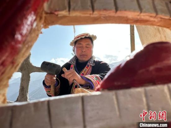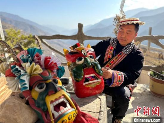雕刻、打磨、上色……甘肅隴南市文縣鐵樓藏族鄉(xiāng)強曲村,白馬人薛剛一家四代人都精于木工。日前中新網(wǎng)記者走訪村子時,薛剛坐在自家院子里,伏案制作池哥晝所用面具。池哥晝是白馬人保留最完整、最具特色民族舞蹈,面具是重要道具之一。薛剛制作的面具不僅用于周邊村子的池哥晝中,而且被廣州、上海等地的客商購買收藏。他時常將自己的想象融入面具中,用心打磨使其更具“靈氣”。他說,白馬人中從事面具雕刻的手藝人不多,最近他物色了一個“00后”徒弟,對方興趣濃厚,希望將這門手藝保護傳承好。圖為薛剛在院子里雕刻面具。閆姣 攝