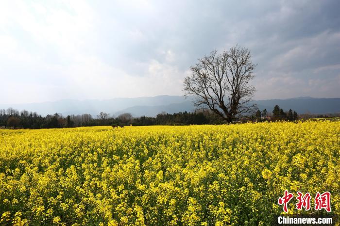 近日,云南省騰沖市界頭鎮(zhèn)成片的油菜花盛開(kāi),吸引不少游客前來(lái)觀光。金黃的油菜花海與遠(yuǎn)處白墻黛瓦的村落相映成趣,共同繪就一幅寫(xiě)意的水墨畫(huà)。圖為油菜花盛放。趙輝  攝