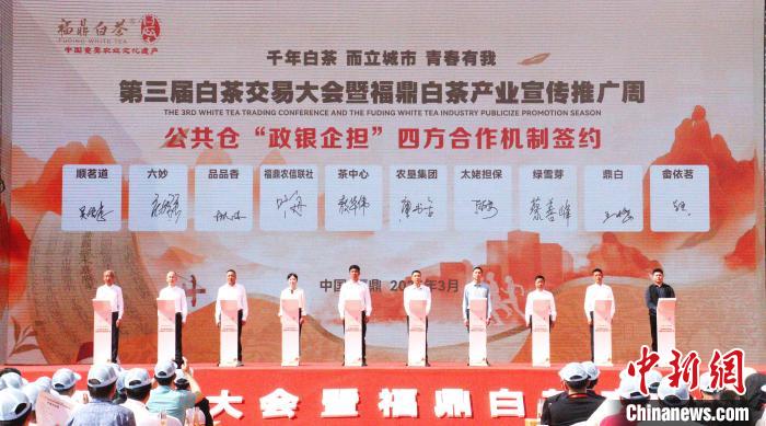 福鼎白茶公共倉“政銀企擔(dān)”四方合作機(jī)制簽約儀式?!×珠派?nbsp;攝