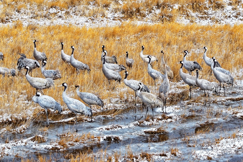 在嘉峪關(guān)草湖國(guó)家濕地公園休整的灰鶴(央廣網(wǎng)發(fā) 嘉峪關(guān)市融媒體中心供圖)