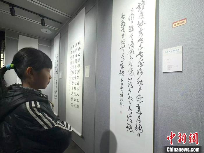 3月30日,一名女孩欣賞韓國(guó)書(shū)法家的書(shū)法作品。項(xiàng)菁 攝