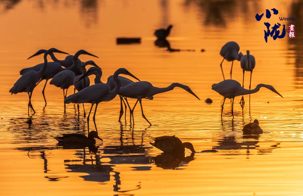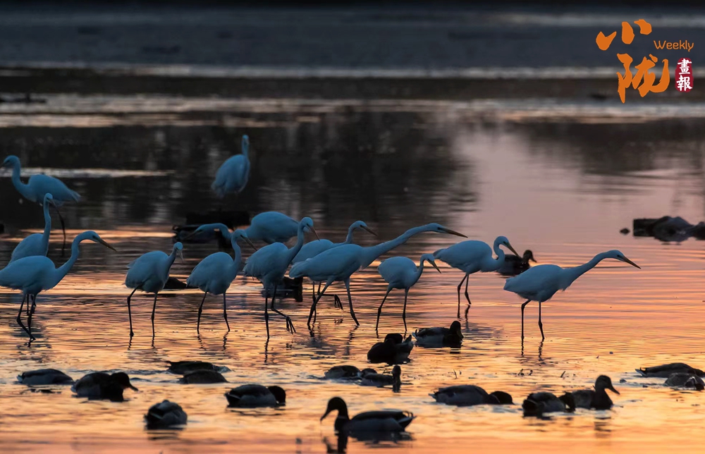 湖中的白鷺翩翩起舞,嬉鬧翻飛,歡快鳴叫,有的停落湖岸,有的游向湖心,有的翻飛空中,為游客帶來無盡的歡樂??带B兒們嬉鬧,仿佛回到童年時代。自由、自在、生機(jī)無限,讓每個人感受到無窮的生命力量。