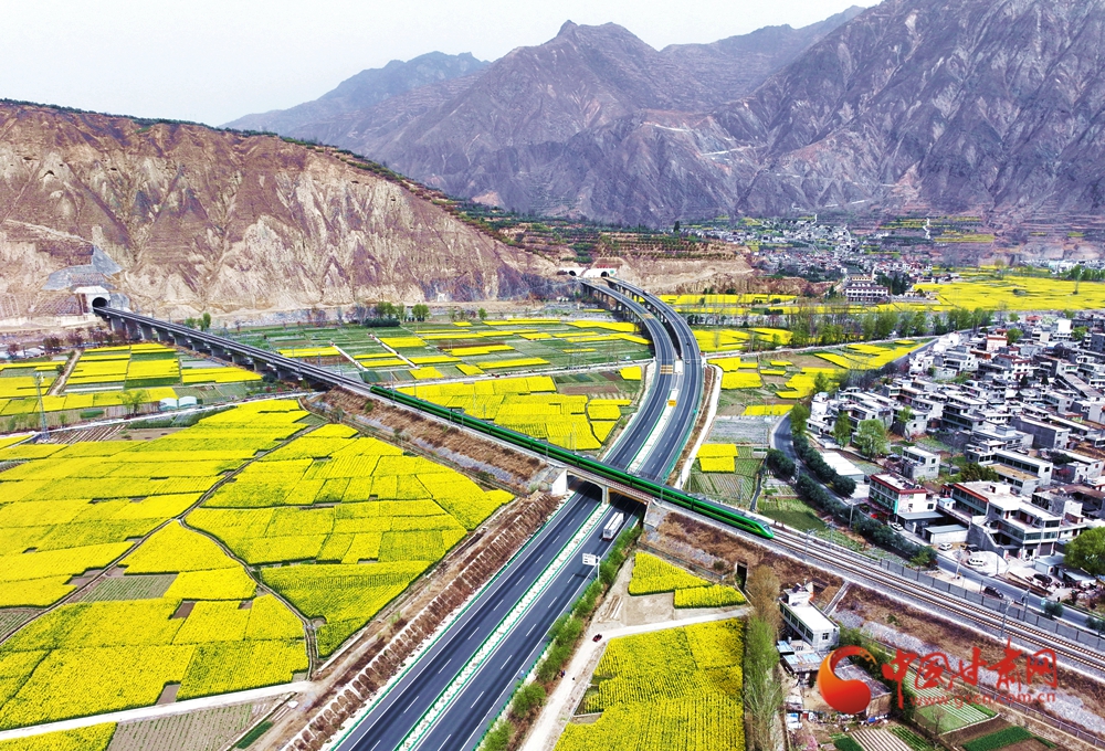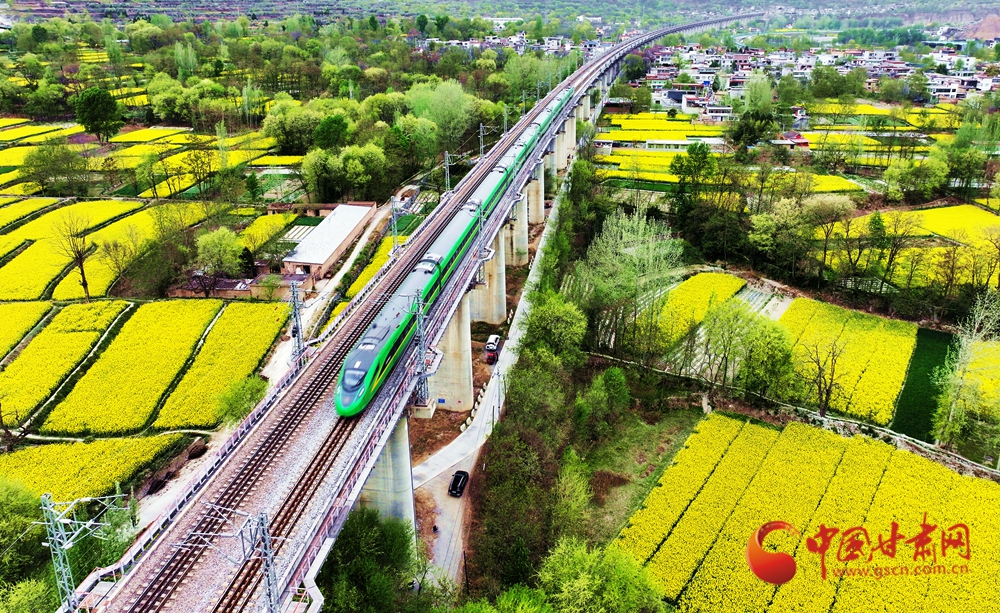 近日,隨著氣溫回升,武都、宕昌白龍江沿岸的油菜花競相綻放,迎來最佳觀賞期,蘭渝鐵路列車在花海中穿梭,宛如一幅絕美的春日畫卷。