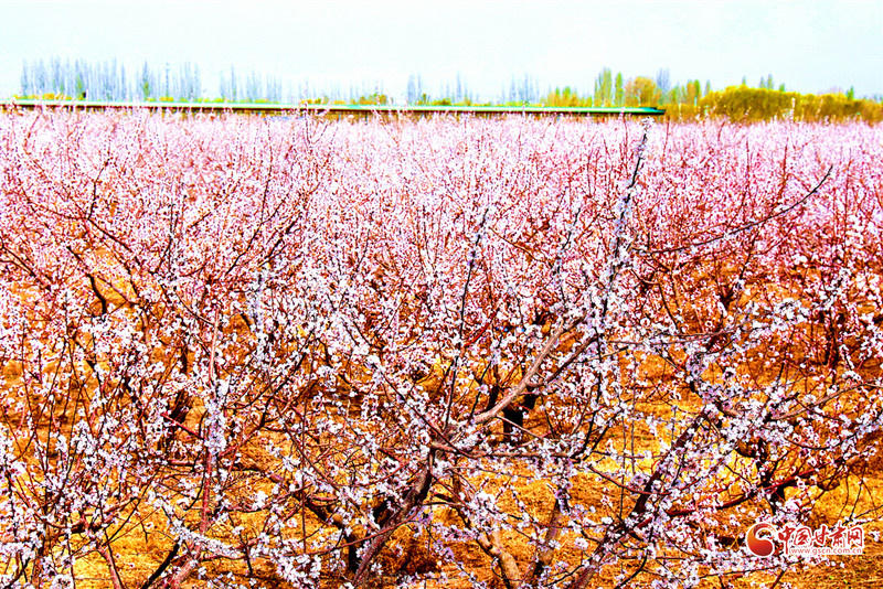 4月13日,臨澤流沙河景區(qū)杏花盛開,游客紛至沓來。在林果示范園中,紅蕾粉瓣的杏花香氣四溢,與景區(qū)建筑和自然景觀相映成趣。湖面與祁連山雪山相互映襯,清澈湖水倒映雪山,波光粼粼。雪山潔白、杏花粉嫩、丹霞山多彩,共同繪就絕美春日畫卷。