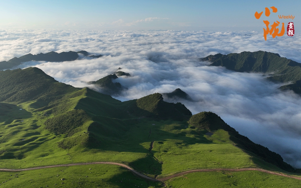 大雨過后,波瀾壯闊的云海層層疊疊,猶如萬馬奔騰,時而風(fēng)平浪靜,浩如煙海;時而沒過山間,猶如涌動的潮水;時而悄悄褪去,猶如飄動的面紗,宛若人間仙境。