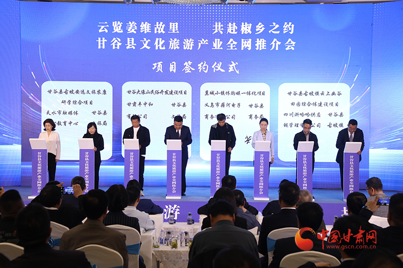 活動(dòng)中,甘谷縣還為文化旅游傳播大使頒發(fā)了聘書(shū),希望他們能夠發(fā)揮自身優(yōu)勢(shì),宣傳推介甘谷文旅。同時(shí),大會(huì)還舉行了項(xiàng)目簽約儀式,共簽約4個(gè)項(xiàng)目,涉及田園綜合體建設(shè)、文旅農(nóng)康研學(xué)綜合等領(lǐng)域。這些項(xiàng)目的成功簽約,為甘谷文旅產(chǎn)業(yè)發(fā)展注入了新的動(dòng)力。