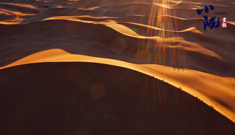 夕陽(yáng)西下,極目遠(yuǎn)眺,在余暉照耀下,連綿起伏的沙丘似金色的海浪,一波接著一波,涌向天際。那細(xì)膩的沙紋,在陽(yáng)光的輕撫下,宛如歲月鐫刻的痕跡,每一道褶皺都藏著故事。