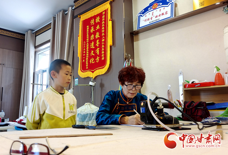 現(xiàn)年66歲的娜仁其其格歲月在她身上刻下了工匠的印記——由于常年埋頭制作蒙古族服飾,腰背已出現(xiàn)變形,眼睛近視。對她而言,肅北蒙古族服飾早已超越衣物本身,成為一個(gè)民族的“活態(tài)史書”。她說:“我這輩子就做了這一件事,我已經(jīng)老了,現(xiàn)在最要緊的,就是通過文字完整地將肅北蒙古族服飾制作技藝保留下來,在后人的手中傳承壯大。”