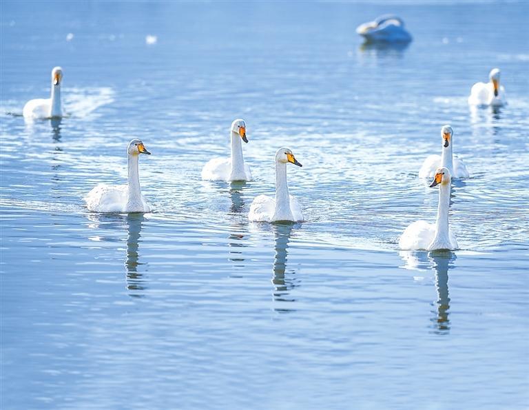 蘭州三江口濕地的冰封河畔上,大天鵝用喙基布滿冰霜的橙喙鑿開生存通道。這里是目前野生天鵝在蘭州的唯一越冬所,為冬日黃河增添了一份靈動(dòng)和生機(jī)。這些北方來客的羽毛并非純白,頸部沾染鹽霜草漬后形成獨(dú)特的顏色與紋路,像是歲月在它們身上留下的印記。當(dāng)?shù)亟M織了巡護(hù),并有專人定期投飼。