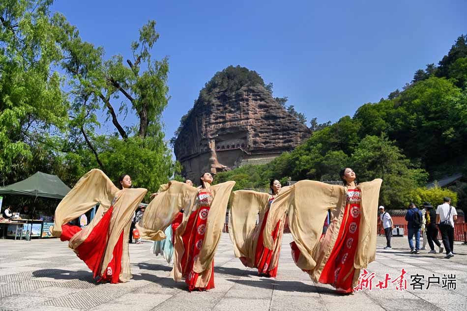 小滿時(shí)節(jié),天水市麥積山石窟窟區(qū),鳥語(yǔ)花香,綠樹成蔭。天南海北的游客們登臨棧道有序觀賞,感受著千年石窟的無限魅力。