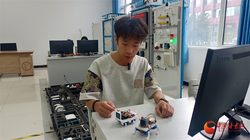 培黎職業(yè)學(xué)院信息技術(shù)學(xué)院學(xué)生唐俊杰和他的創(chuàng)新團隊最近組裝了兩只機器狗,通過語音遙控可以實現(xiàn)指令輸出,達到陪伴、互動的目的。唐俊杰說,“手腦并用、創(chuàng)造分析”鼓勵他們要理論聯(lián)系實際,以動手能力讓圖紙變成現(xiàn)實,機器狗是他們的在實踐課程中不斷創(chuàng)新探索而來。