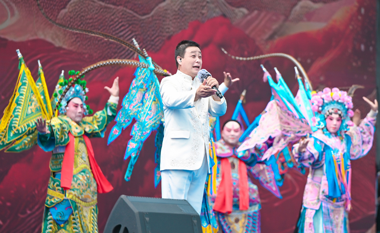 活動(dòng)伊始,開場(chǎng)片《歡迎乘坐崆峒號(hào)》以“環(huán)西部火車游·崆峒號(hào)”平?jīng)雎糜螌A袨殪`感,通過跨時(shí)空對(duì)話串聯(lián)崆峒山古今脈絡(luò),拉開活動(dòng)序幕?,F(xiàn)場(chǎng),街舞與崆峒武術(shù)團(tuán)體合作的《武韻崆峒》展現(xiàn)武術(shù)與現(xiàn)代肢體藝術(shù)新生機(jī);笛子演奏與武術(shù)冠軍聯(lián)袂呈現(xiàn)的《崆音劍影》打造“可聽的武術(shù)”沉浸式體驗(yàn);30人陣容的江蘇武協(xié)女子太極拳團(tuán)體演繹《鶴起崆峒》,詮釋武術(shù)新功用;國(guó)風(fēng)歌手與秦腔表演藝術(shù)家合作的《秦韻長(zhǎng)歌》,展現(xiàn)“武戲同源”的多元魅力。