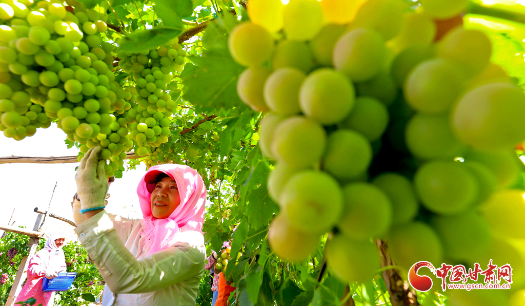 8月12日,甘肅省張掖市臨澤縣板橋鎮(zhèn)1.5萬畝葡萄喜獲豐收,進入采摘期,吸引著周邊省市客商和游客前來觀賞、采摘與訂購。