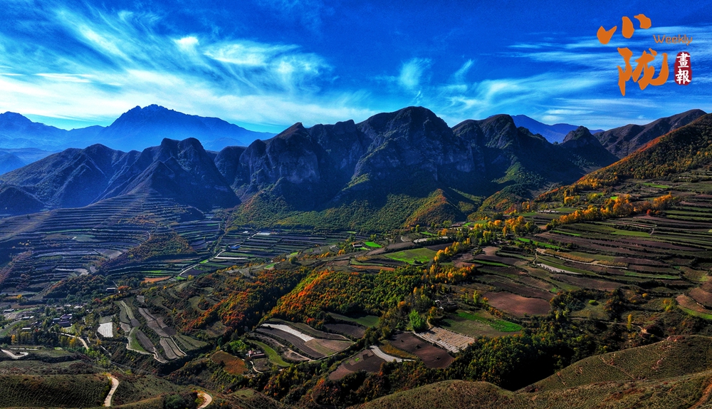 巍峨群山,連綿橫亙。古樸的村莊,山上的樹(shù)木,豐收的田地,如同披上了姹紫嫣紅的霓裳,顯得更加寧?kù)o溫暖。