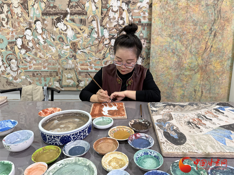 10月31日,由中央網(wǎng)信辦網(wǎng)絡傳播局、國家文物局政策法規(guī)司指導,中國互聯(lián)網(wǎng)發(fā)展基金會特別支持,甘肅省委網(wǎng)信辦、省文物局主辦,張掖、嘉峪關、酒泉市委網(wǎng)信辦與敦煌研究院、中國甘肅網(wǎng)、鳳凰網(wǎng)甘肅頻道共同承辦的“何以中國|壁畫里的中國·當AI遇見小飛天”網(wǎng)絡主題宣傳活動采訪了敦煌石粉彩繪技藝的非遺傳承人王亞林。