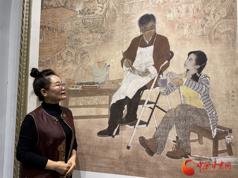 王亞林說,她這幅畫里的學生是按照自己來畫的,在敦煌壁畫的世界里,每個人都是虔誠的學習者。