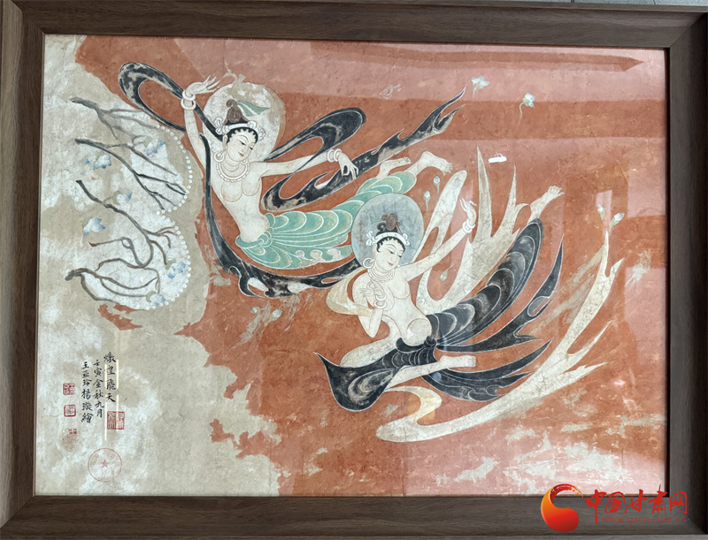 而在古今飛天交匯的地方,王亞林用一張張飛天壁畫講述著敦煌的故事。