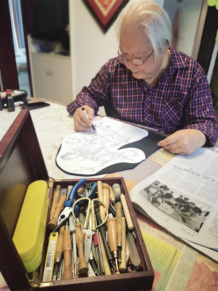 談到創(chuàng)作過程,他眼神中閃爍著匠人的嚴(yán)謹(jǐn)光芒:“剪一個(gè)好作品,首先要有一個(gè)構(gòu)思,然后再把它畫出來,再去動(dòng)剪刀、刻刀各種工具。” 在他這里,剪紙絕非簡(jiǎn)單的“剪花樣”,而是嚴(yán)謹(jǐn)?shù)乃囆g(shù)創(chuàng)作,是“胸有成竹”后的“運(yùn)剪如風(fēng)”。