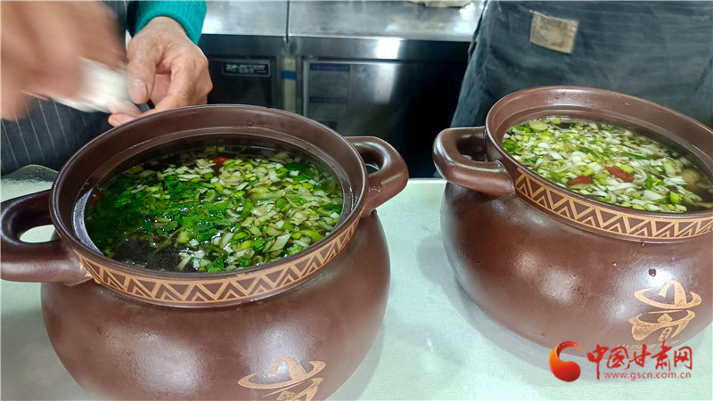 “選材不能將就,三年以上的羯羊,肉質(zhì)才夠緊實(shí);配菜必用山丹野生地耳、發(fā)菜,這是罐罐席的魂。”凌晨五點(diǎn),王永德已穿梭在農(nóng)貿(mào)市場(chǎng),指尖劃過(guò)羊肉紋理,便能辨出新鮮與否。“緊火煮肉,慢火煨湯,火候差一分,味道就薄一寸。”王永德從吊湯、炒糖色到下料煨香,八道工序環(huán)環(huán)相扣,八小時(shí)文火慢熬,方得一罐琥珀色的濃湯。