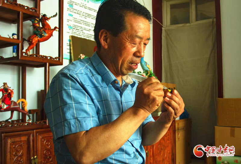 為捕捉動態(tài)美感,他常觀察動物神態(tài),甚至將蛐蛐養(yǎng)在瓶中細(xì)細(xì)揣摩。他還把河西走廊的地域文化融入創(chuàng)作,從《河西寶卷》中汲取題材,用面塑展現(xiàn)地方特色和歷史故事。