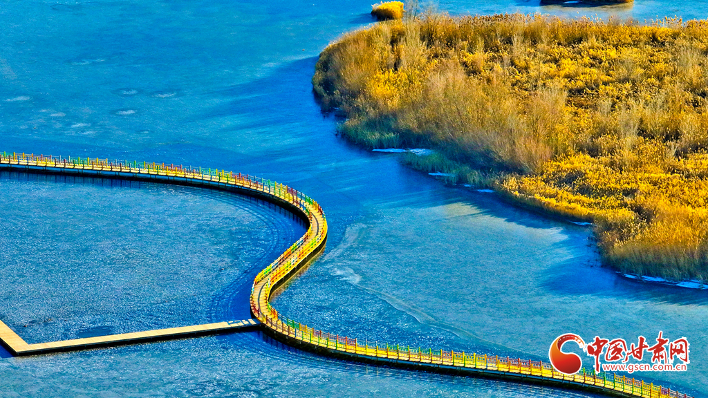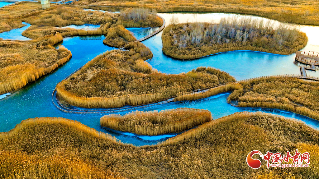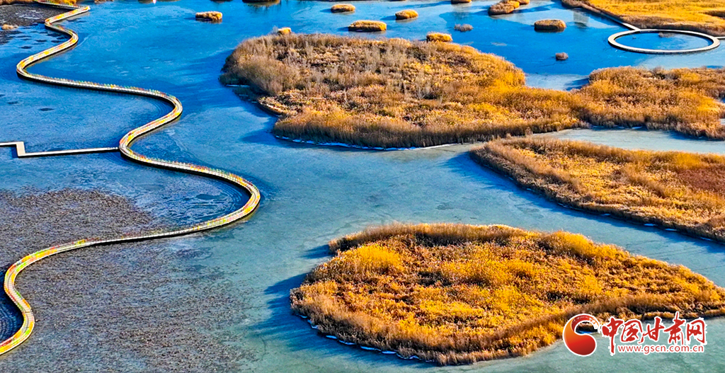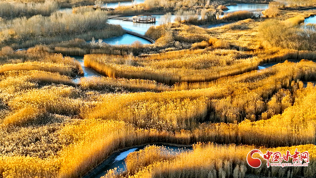 12月4日,張掖市黑河濕地國(guó)家級(jí)自然保護(hù)區(qū)內(nèi),經(jīng)風(fēng)霜浸染的蘆葦與蒲草披上金裝。從高空俯瞰,夕陽(yáng)下的蘆葦蕩如金色海洋,蘆花隨風(fēng)輕舞,碧水凝冰環(huán)繞其間,宛如一幅鋪展的濕地金畫(huà)卷,吸引眾多游客與攝影愛(ài)好者前來(lái)觀賞拍攝。
