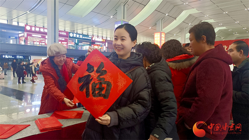 春運首日,國鐵蘭州局在蘭州西站、銀川站、嘉峪關南站等車站開展“文明出行 文化相伴”特色活動,通過贈送春聯(lián)福字、文明出行倡議簽名及簡約文藝展演,為候車旅客營造濃厚年節(jié)氛圍。