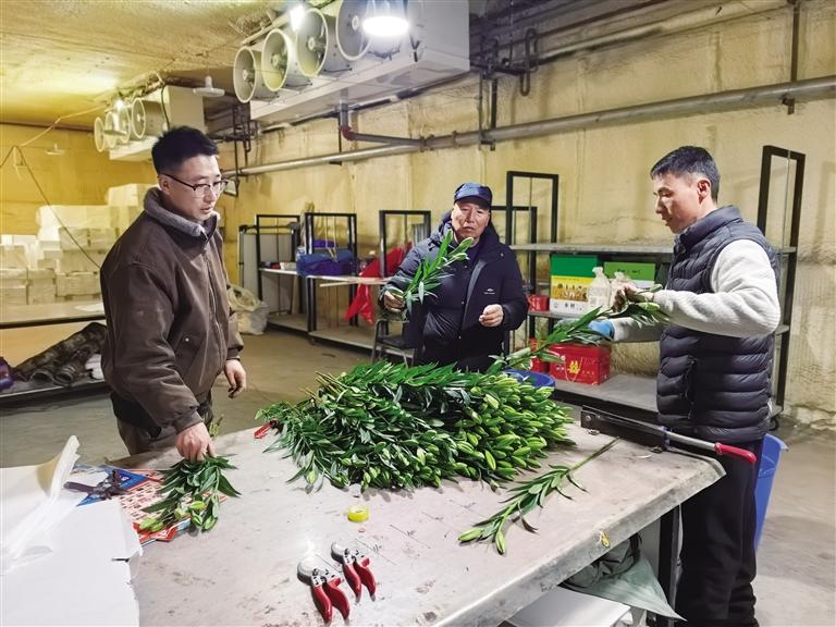 工人打包分裝百合花