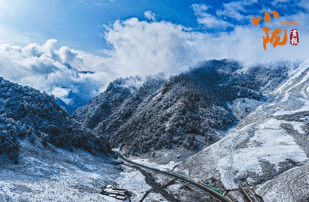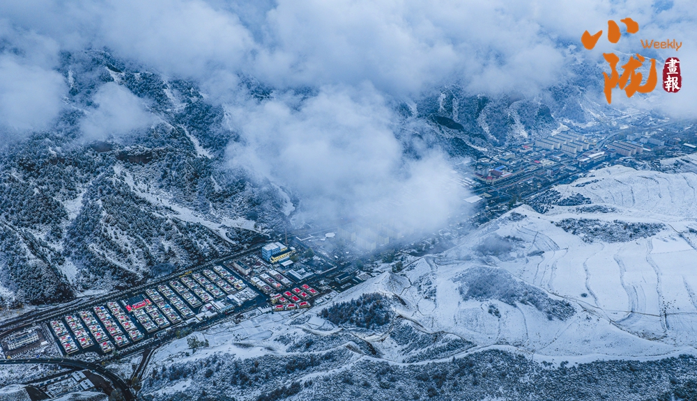 從高空俯瞰,烏鞘嶺的山脊線在雪中若隱若現(xiàn),一側云海翻騰,一側晴空萬里,形成鮮明的“一山分兩景”的奇觀。