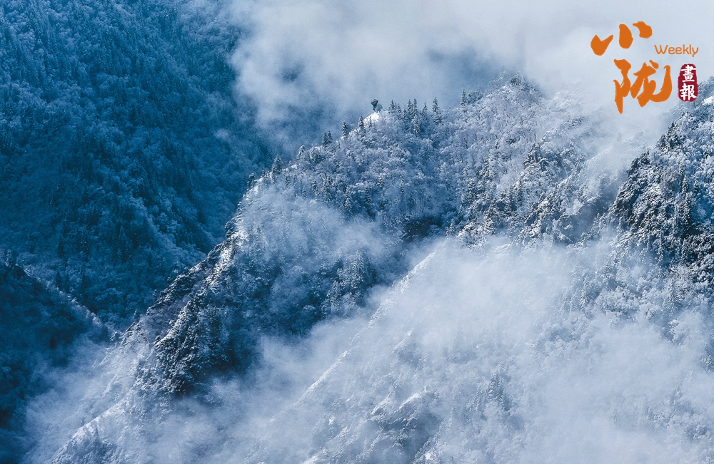 山腰墨綠色的松林,松枝上掛滿了毛茸茸的雪凇。那不是雪,那是大自然最細膩的工筆,描繪出的雪凇奇觀。風起時,細碎的冰晶簌簌飄落,折射出萬千銀光,如夢似幻。