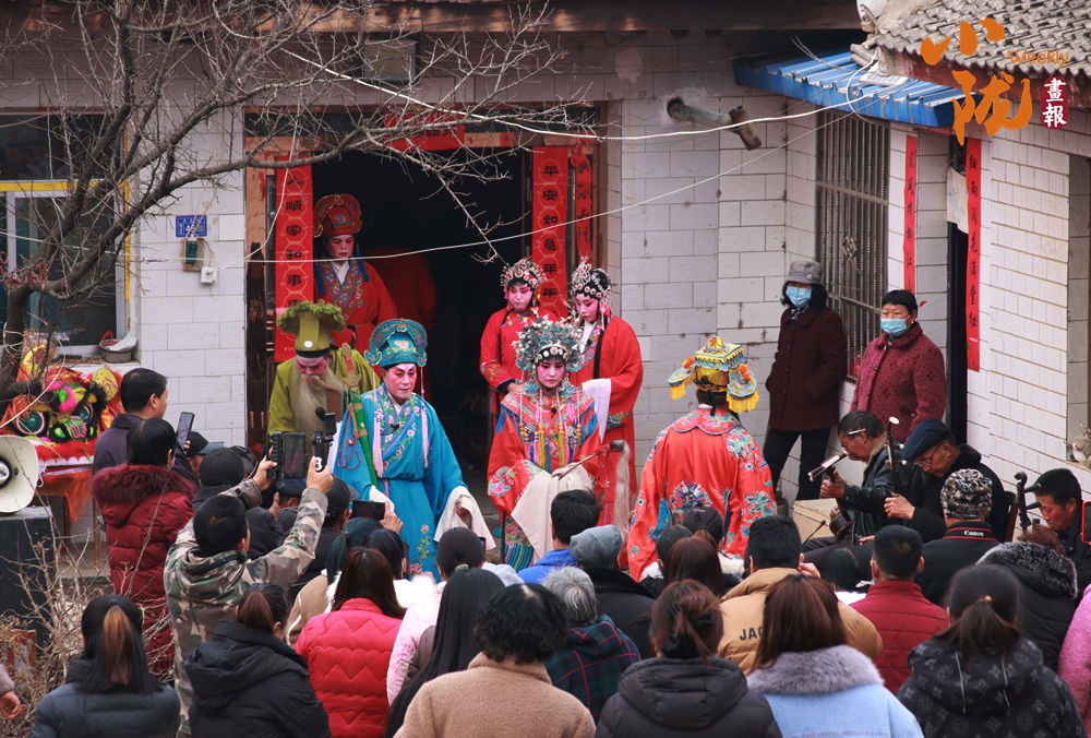 民居門口的舞臺(tái)上,多位扮相精致的演員依次亮相,或持扇或執(zhí)巾,唱腔婉轉(zhuǎn)、身段靈動(dòng)。臺(tái)下村民圍得水泄不通,不少人舉著手機(jī)定格精彩瞬間,伴奏的鑼鼓弦樂(lè)聲里,滿是濃郁的鄉(xiāng)土氣息。