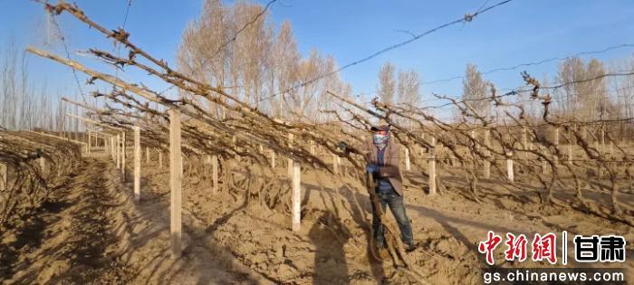 圖為敦煌市陽關(guān)鎮(zhèn)萬畝葡萄枝蔓出土上架。敦煌市委宣傳部供圖