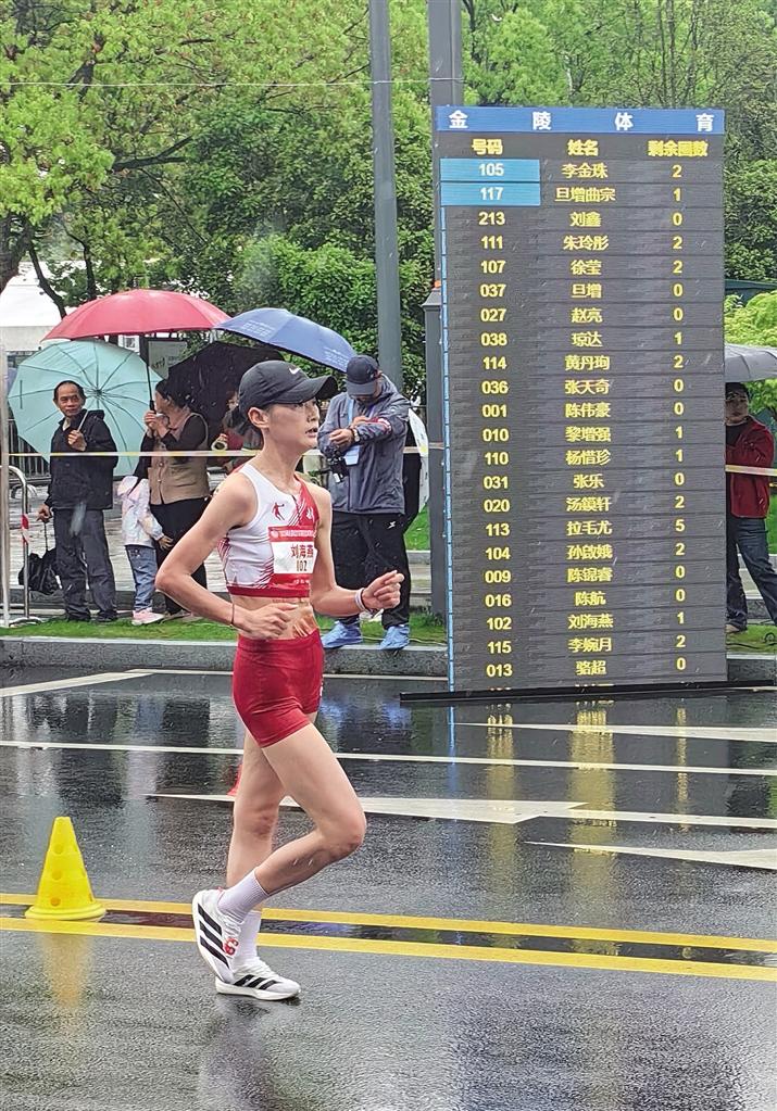 在4月11日率先開賽的女子大獎賽成年組半程馬拉松競走決賽中,我省競走選手劉海燕發(fā)揮穩(wěn)定,全程保持在第一集團,沉著應對各路對手,合理把控比賽節(jié)奏。最終以1小時36分25秒的出色成績拿下冠軍。